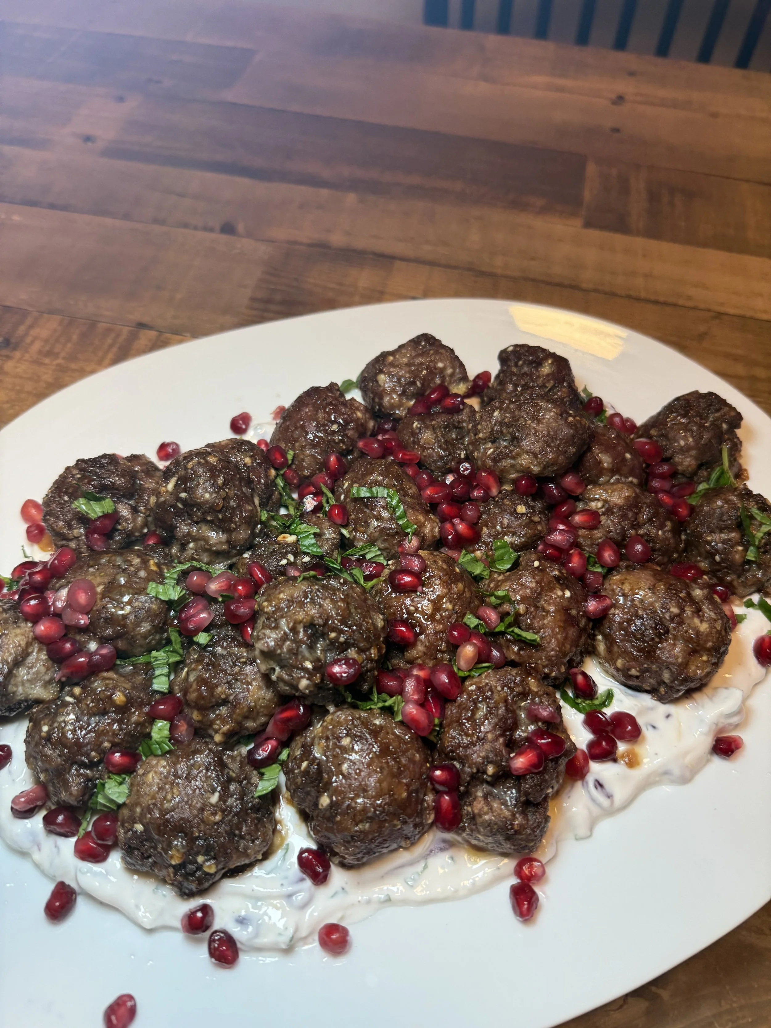Pomegranate Molasses Glazed Lamb Meatballs with Mint Yogurt Sauce (GF)